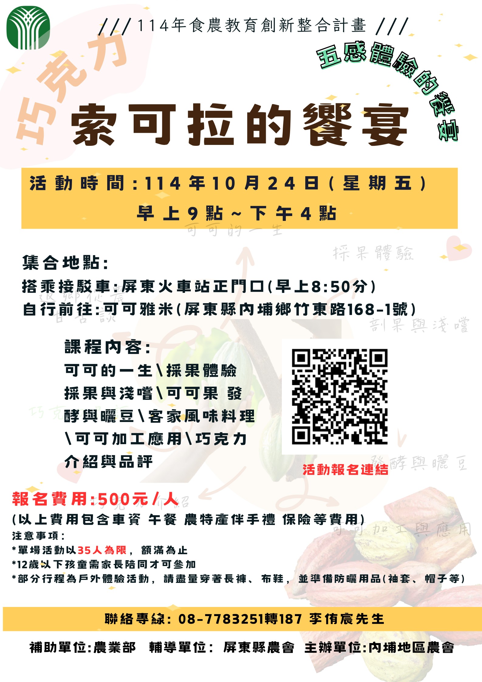 說明: 一、依據食農教育創新整合計畫辦理。 二、檢附活動宣傳報名表乙份。