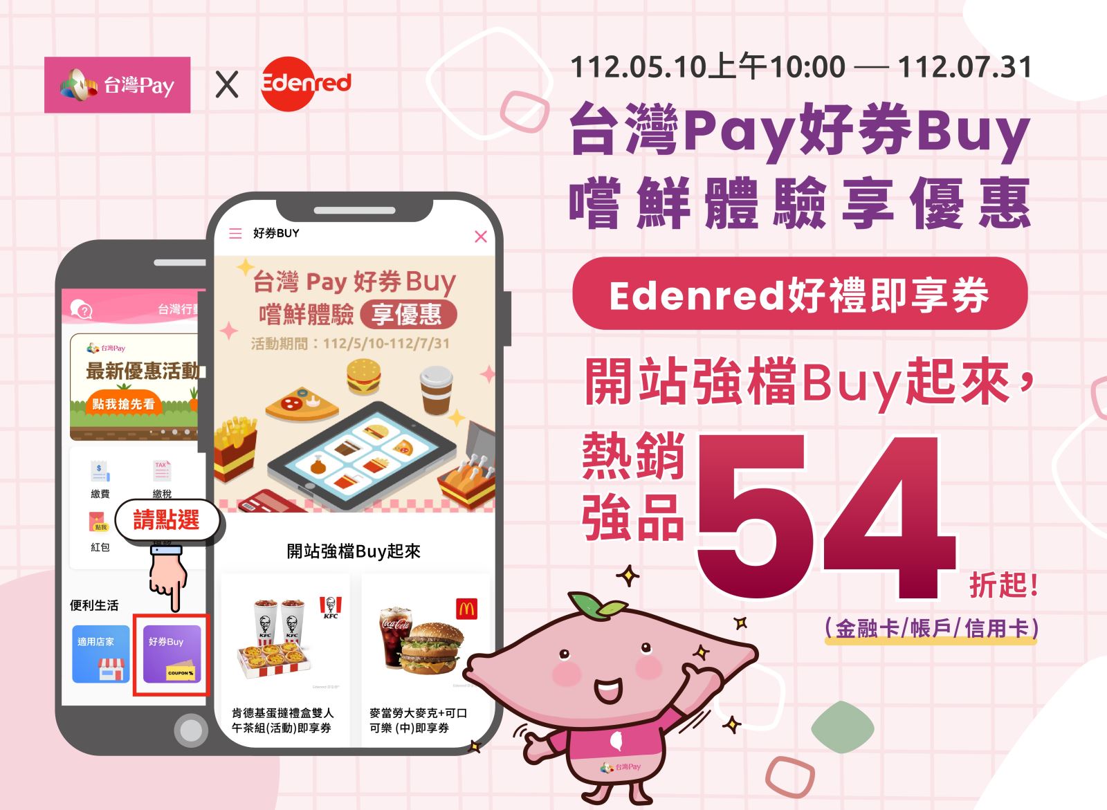 使用「台灣Pay」支付,即得以優惠價格購買指定商品券,每種指定商品券優惠數量有限,售完為止。